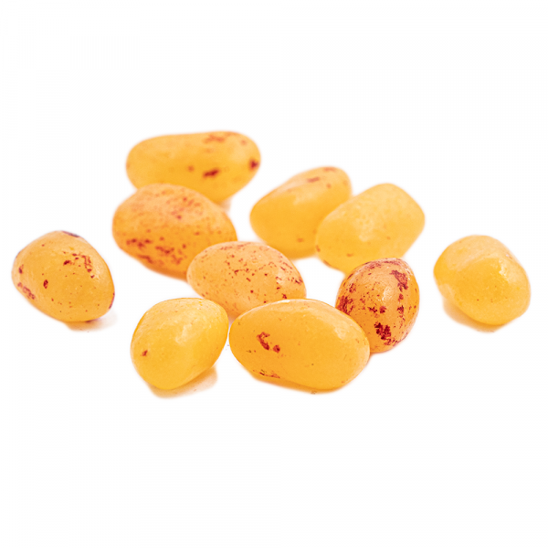 Caramelle gommose a forma di fagiolo, gusto pesca.